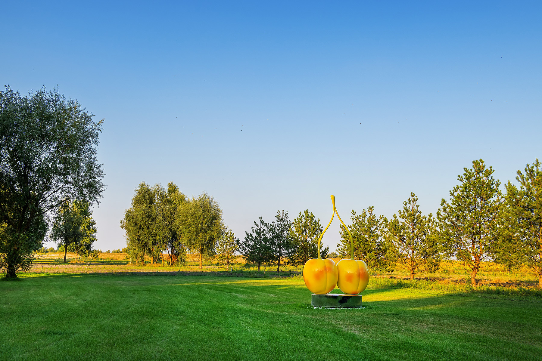 The humankind is currently facing a serious challenge of the global warming, with its effects most noticeable in certain regions of the planet. These areas glow red on temperature maps, much like areas of combat on war maps. Two ripe white cherries are a symbolic artistic take on this global problem.