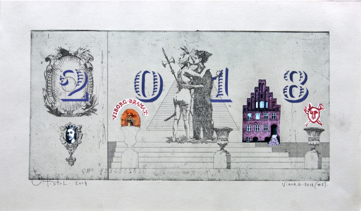 • Oleg Tistol. Viborg - 2018 #2 (2018), Etching and collage, 58 x 35cm