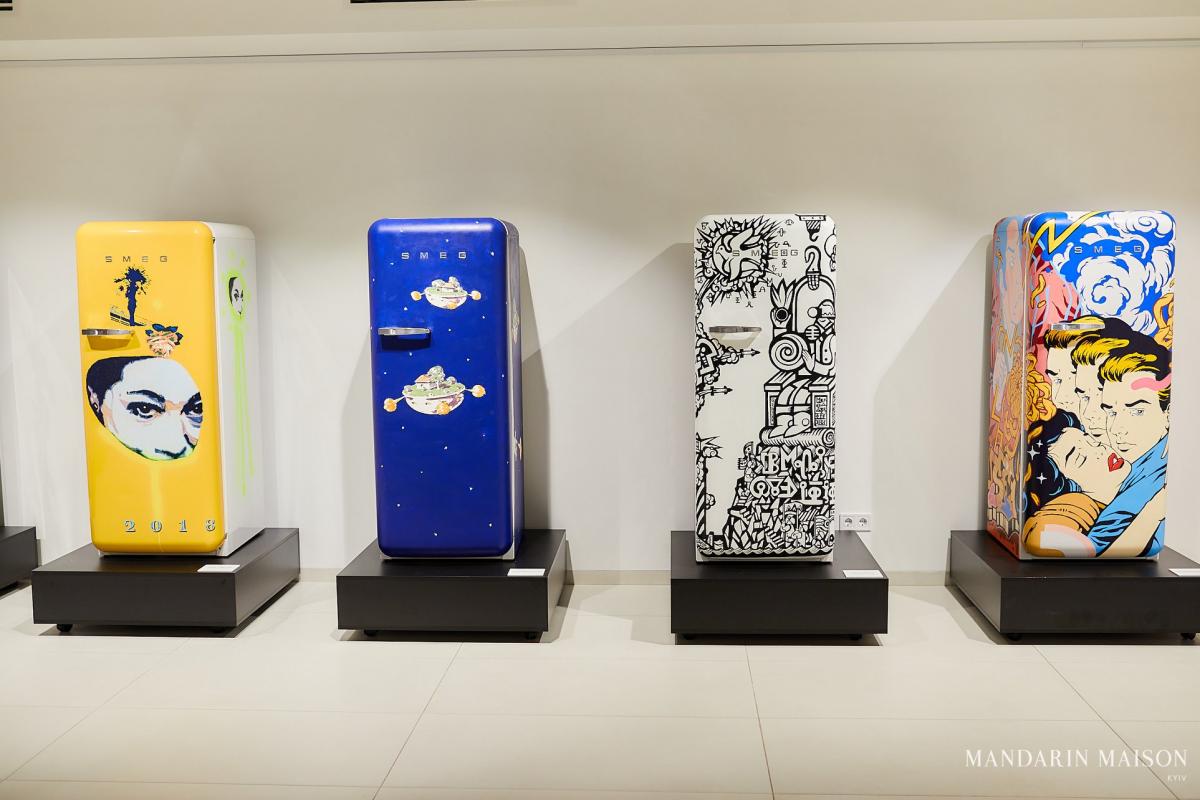 Вісім сучасних українських художників презентують свої знакові роботи, у просторі Mandarin Maison, також буде представлена унікальна експозиція з 8 холодильників SMEG, кожна з яких була перетворена в мистецький об'єкт.